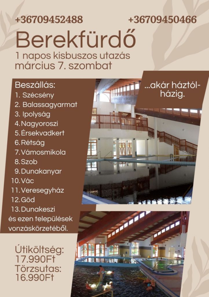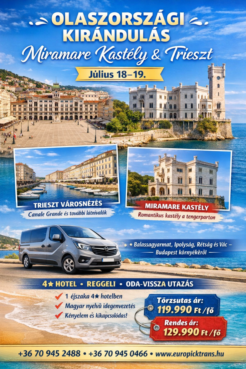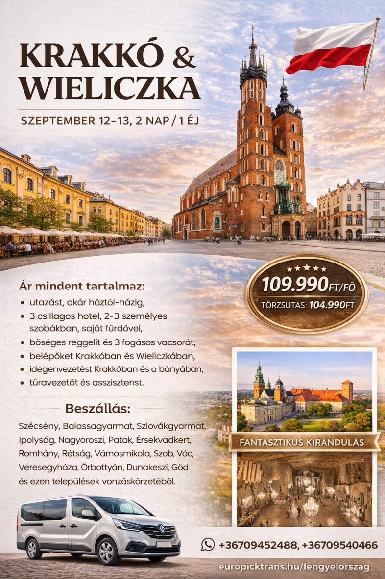 Egy, kettő és három napos szabadprogramos utazásokat szervezünk háztól - házig. Az utazás kisbusszal (9 személyes) történik a gyors utazás érdekében Nógrád, észak - Pest vármegye, Ipolyság régiójából Lengyelországba, Szlovákiába, Horvátországba, Ausztriába, Szlovéniába, Olaszországba, Erdélybe és belföldre egyaránt.