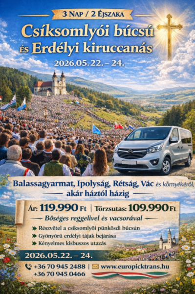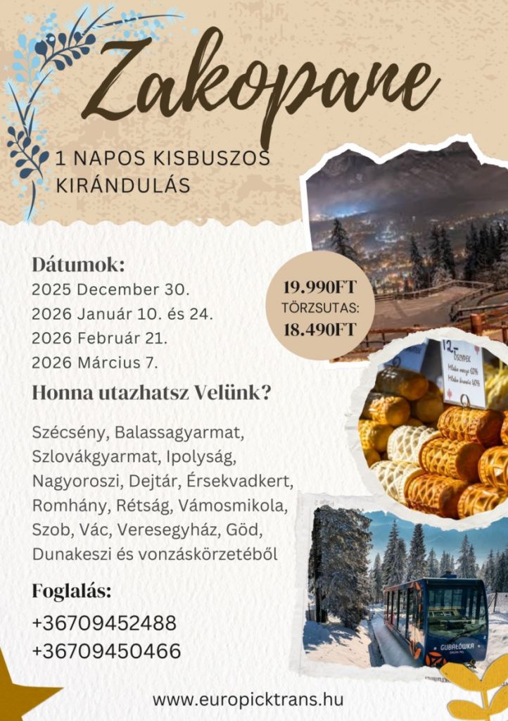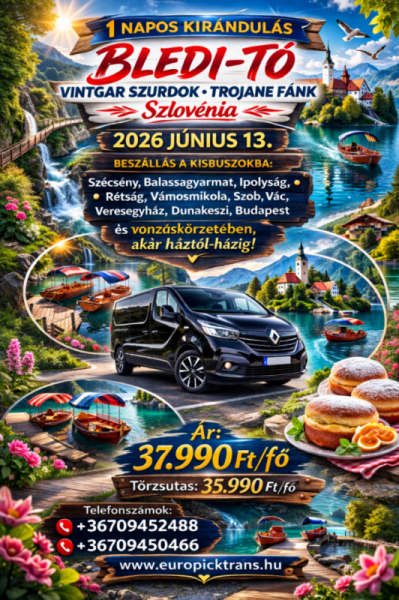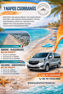 Egy napos buszos utazások, belföldön és külföldön,